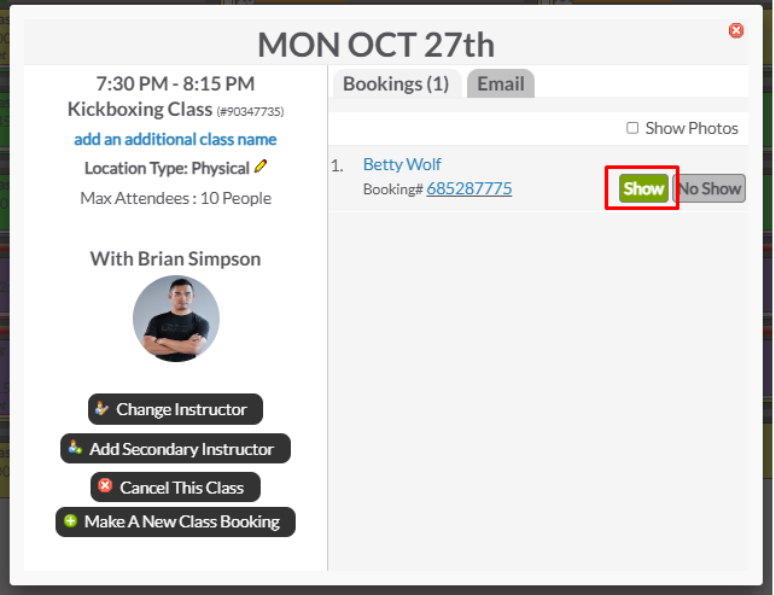 El usuario es marcado como Asistió en ClubReady.